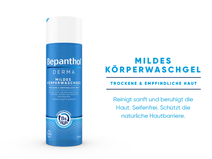Die Bepanthol® Derma Hautpflegeserie beruhigt juckende, trockene Haut ab der ersten Anwendung und pflegt lang anhaltend - von innen nach außen.